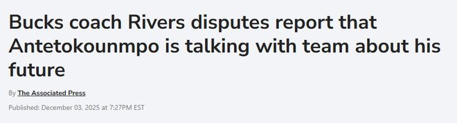 北京时间12月4日,雄鹿队主帅道格-里弗斯今日表示,球队管理层与两届常规赛MVP字母哥之间,并未就其可能离队一事展开任何商谈。