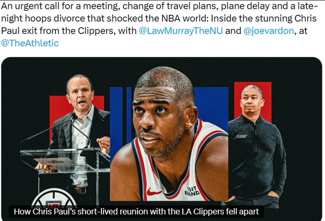 北京时间12月4日,TA名记Sam Amick和快船记者Law Murray、Joe Vardon在长文中剖析了压垮快船和保罗分手的“最后一根稻草”。