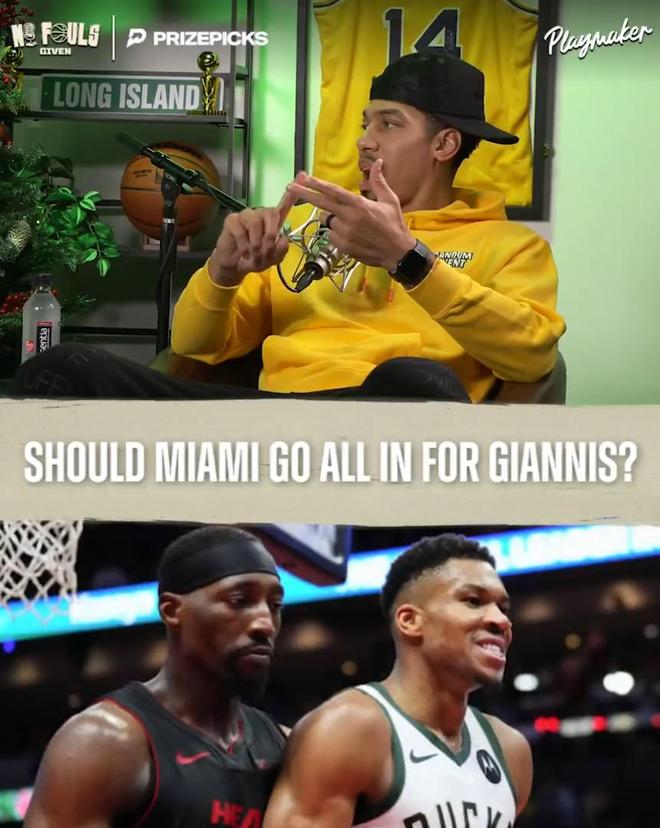 在最新一期的播客节目No Fouls Given中,嘉宾丹尼-格林谈到了字母哥的去向,他认为热火队应该全力争夺字母哥,可以出维金斯+凯尔-韦尔+小海梅-哈克斯+冯泰奇奥+约维奇+数个首轮签的筹码。